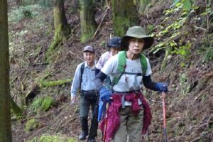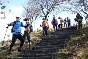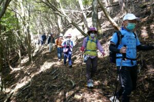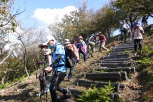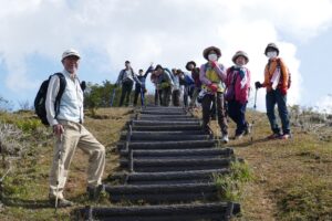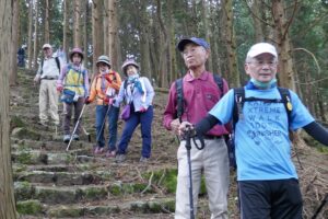 4ケ月のブランクがあった為、『石畳みの道』で足を慣らした上で、尼ケ岳の急登(階段道)に挑戦することにしました。道中では、昨夜(10/13)放送の白山高校がモデルの『下剋上球児』の話題や4ケ月間の積もった話などで盛り上りました。