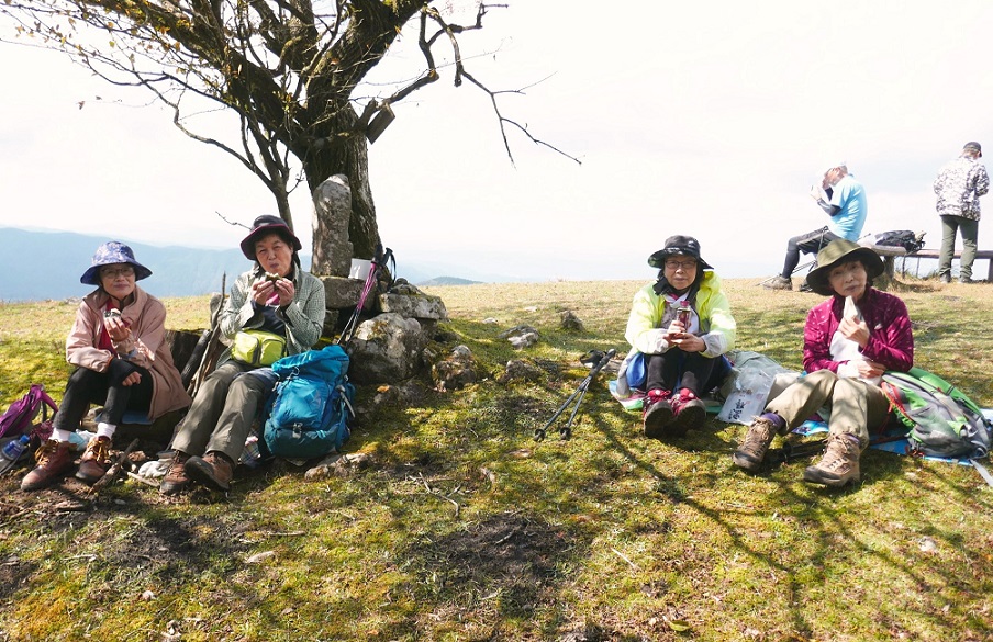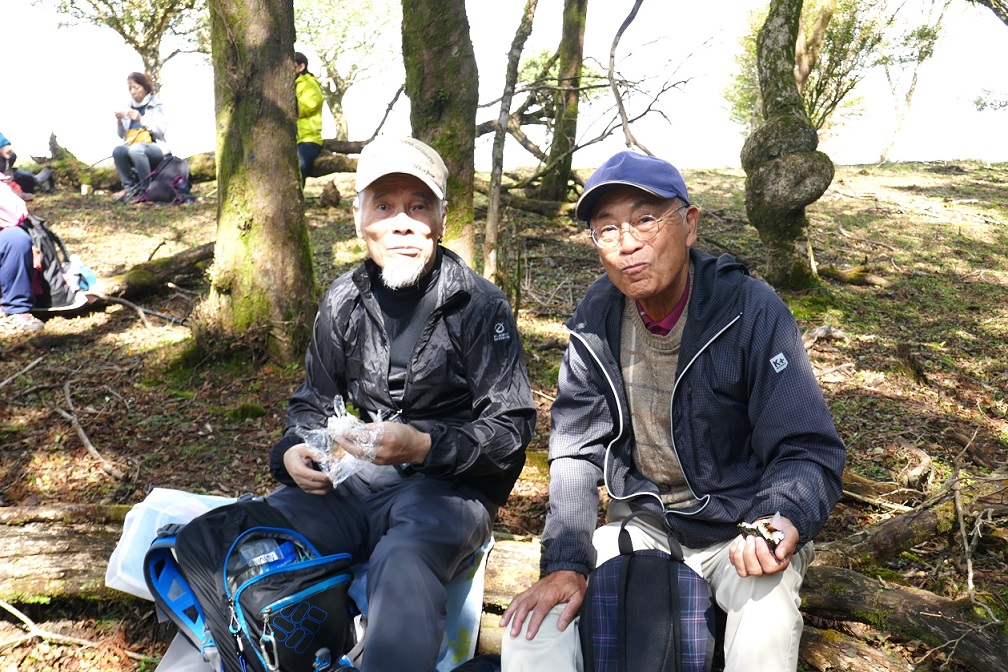 また、急な階段や滑り易い斜面を励まし合いながら、歯をくいしばって、何とか12時に山頂に到着しました。