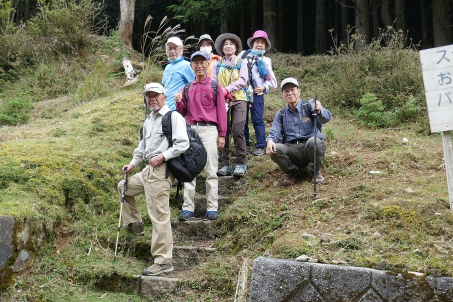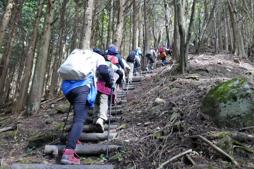 4ケ月のブランクがあった為、『石畳みの道』で足を慣らした上で、尼ケ岳の急登(階段道)に挑戦することにしました。道中では、昨夜(10/13)放送の白山高校がモデルの『下剋上球児』の話題や4ケ月間の積もった話などで盛り上りました。