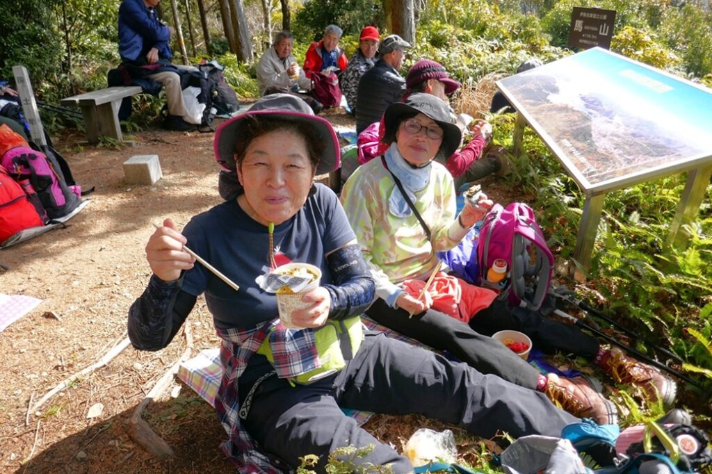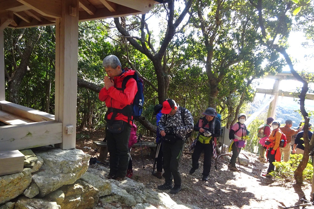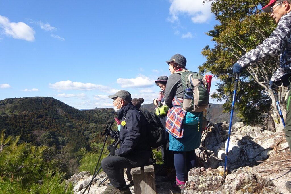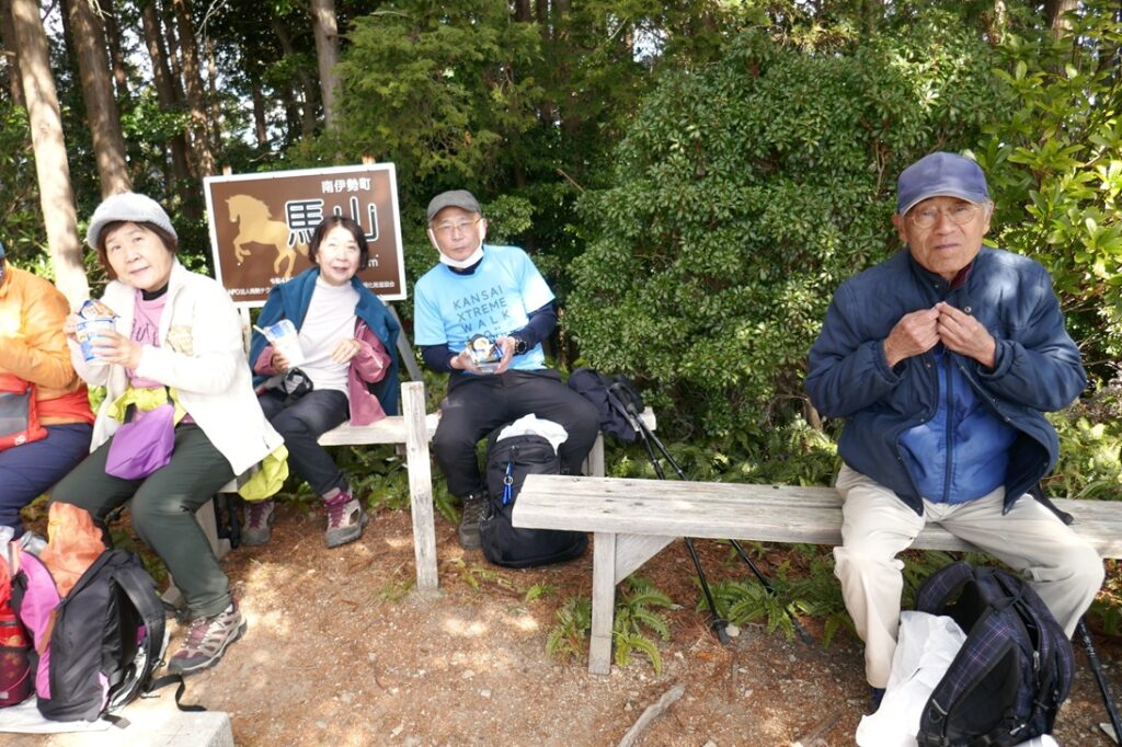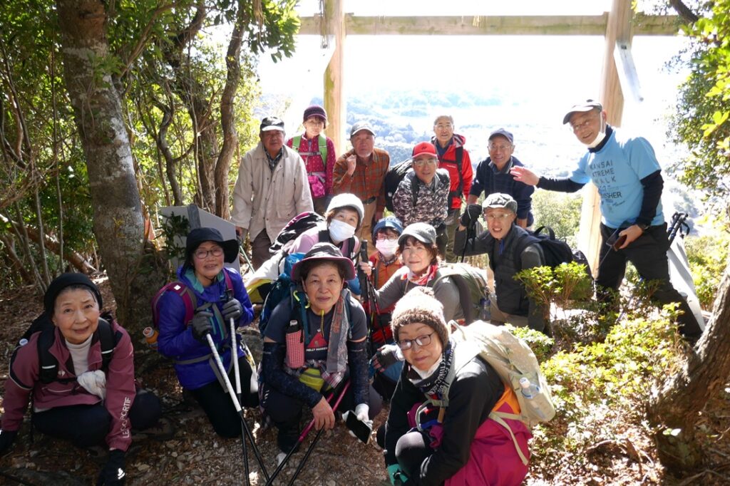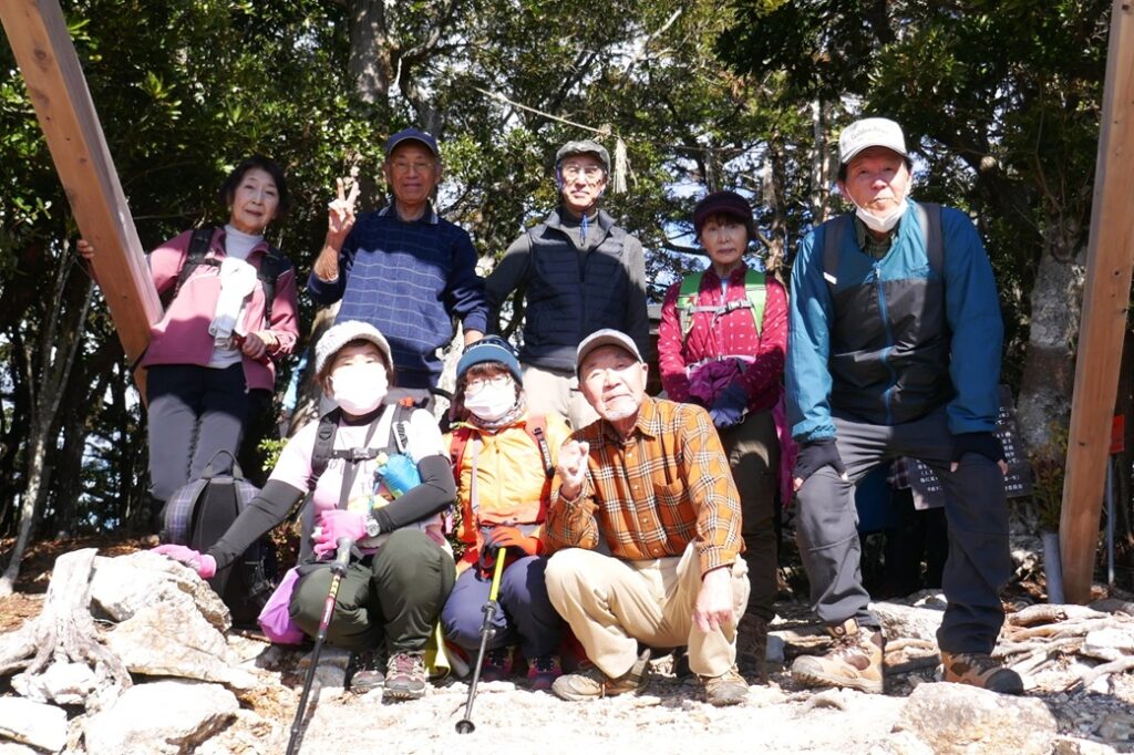 山頂は、日差しがあり、眺望も最高で、ゆっくり昼食をとり、山頂で記念写真を撮って、愛洲の館に戻りました。 -