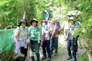 本日は、いつものストックを日傘に持ち替えて、熱中症対策をして実施しました。