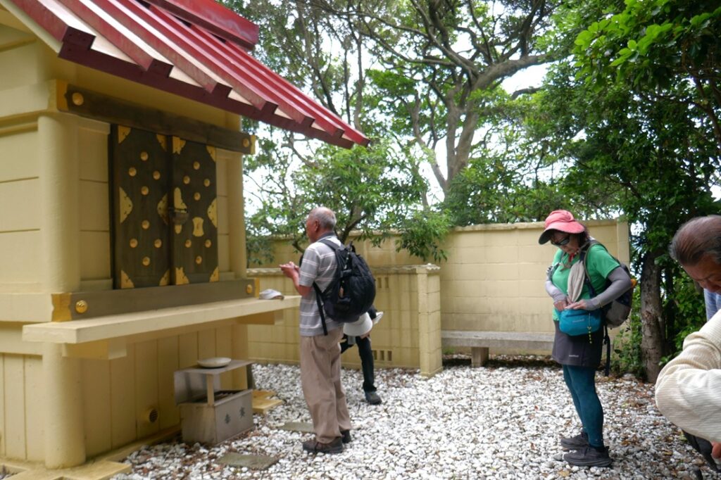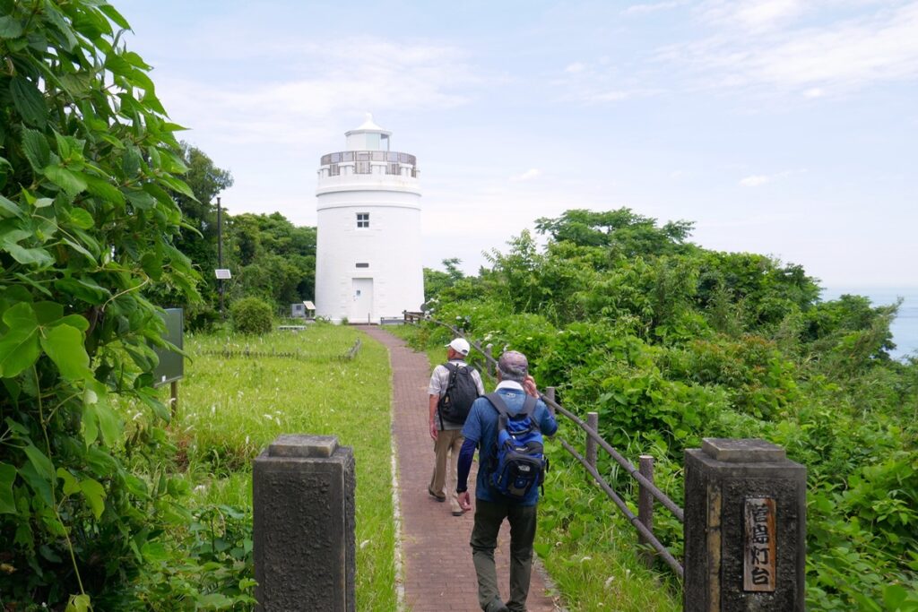 天気予報は、「曇りのち晴れ」でしたが、朝から非常に日差しが強くて蒸し暑く、皆さん大量に汗をかきました。 - 菅島港から、右回りに 海岸線の名所から菅島灯台⇒監的哨跡⇒菅島神社⇒菅島港の順に巡りました。