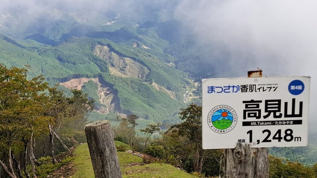 - 15_ガスの中、高見山・山頂に到着です