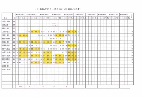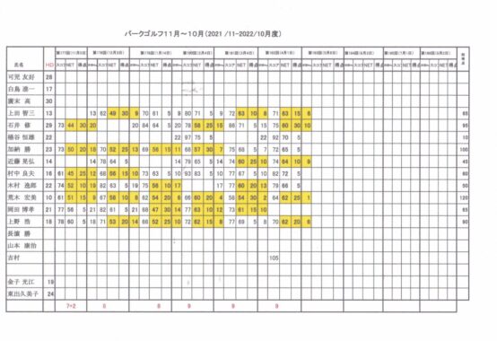 9月のパークゴルフ成績表です。10月は7日の予定でしたが5日変更しま…