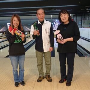 2024.02.16 ボウリング部会, 最新情報 2024年2月度パナパナボウリングを開催しました 現在、会員数は22名となりました 2024年2月13日 パナパナボウリング19名参加で、楽しい時間をすごしました トップ賞は、岩本さん・乙部さん・原さんの3名でした おめでとうございます 岩本さん 乙部さん 原さん 集合写真 皆さんの華麗な投球フォームをご覧ください ボウリング部会, 最新情報