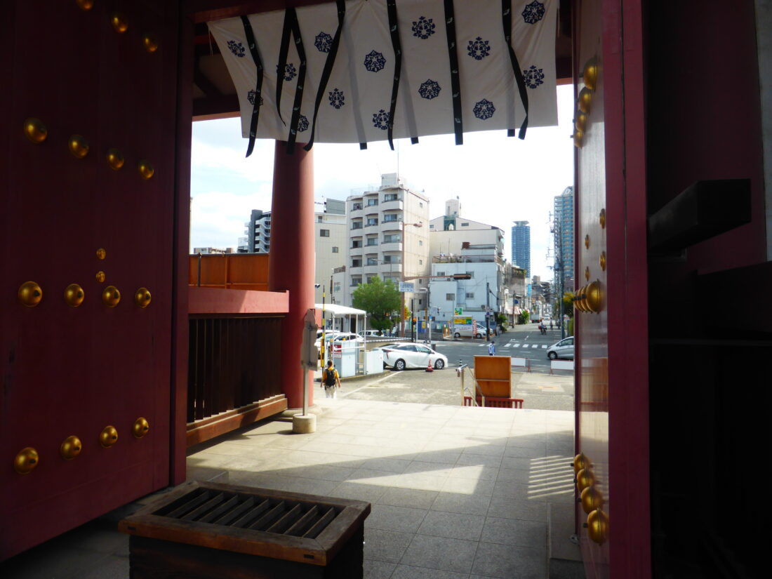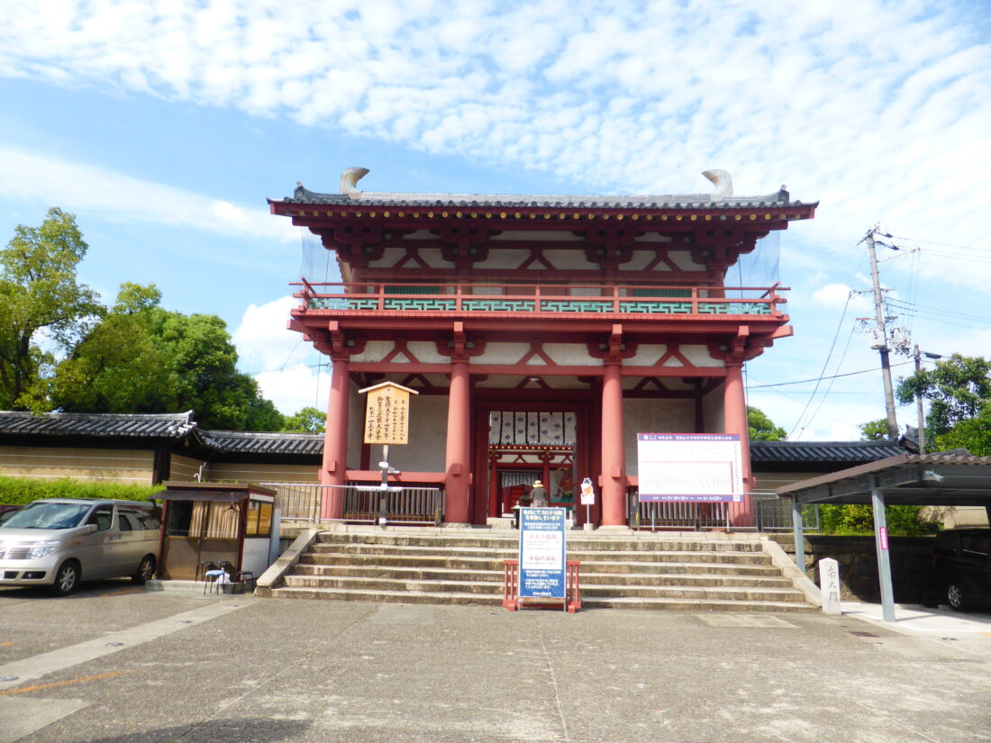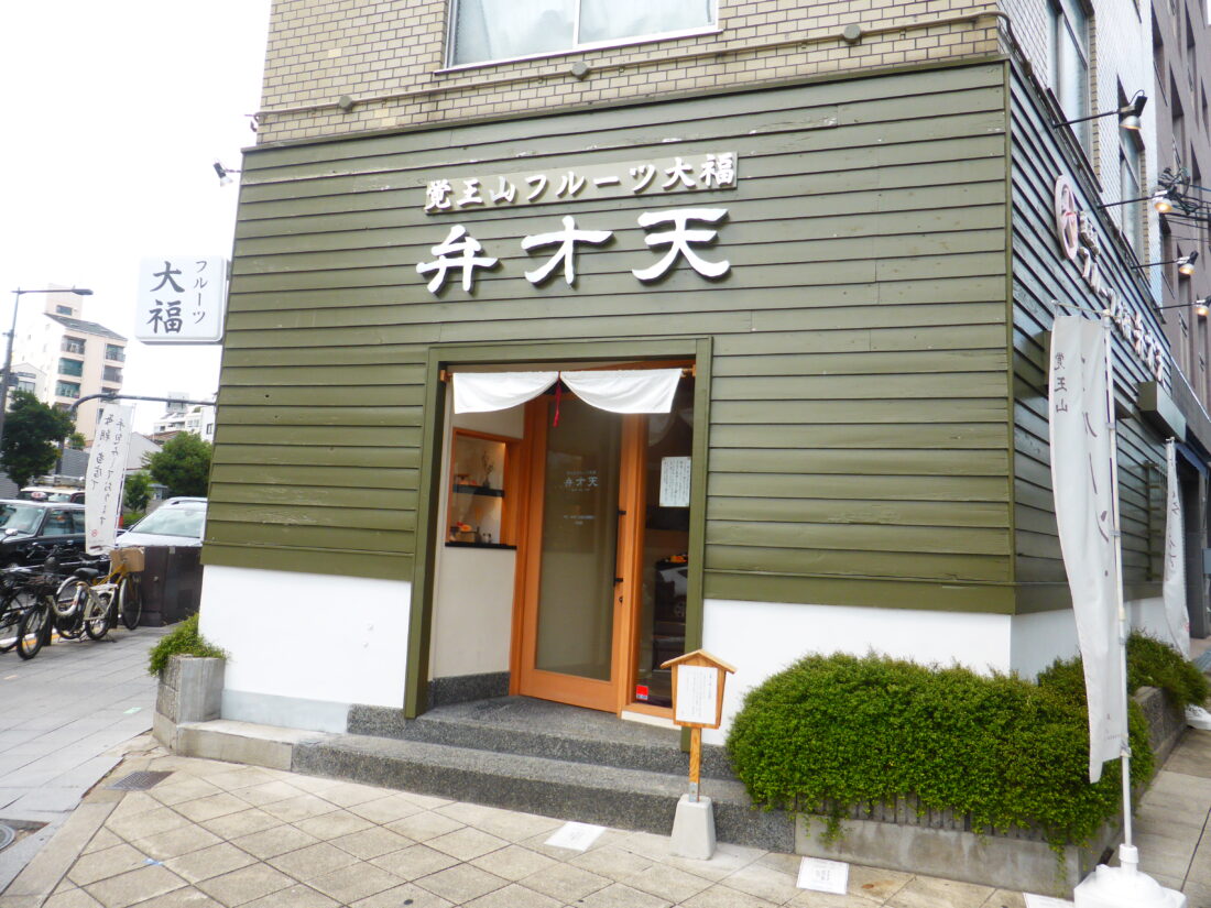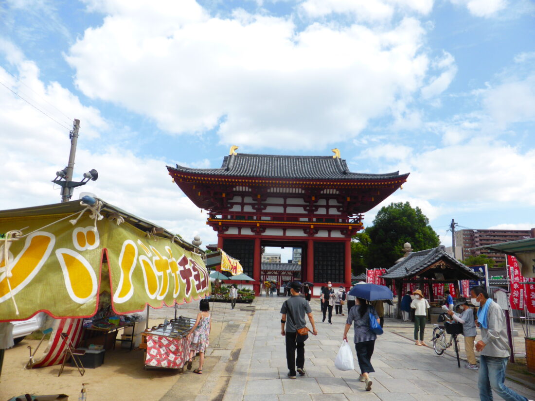 まずは、フルーツ大福の店です。四天王寺さんの南大門を出ます。