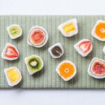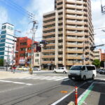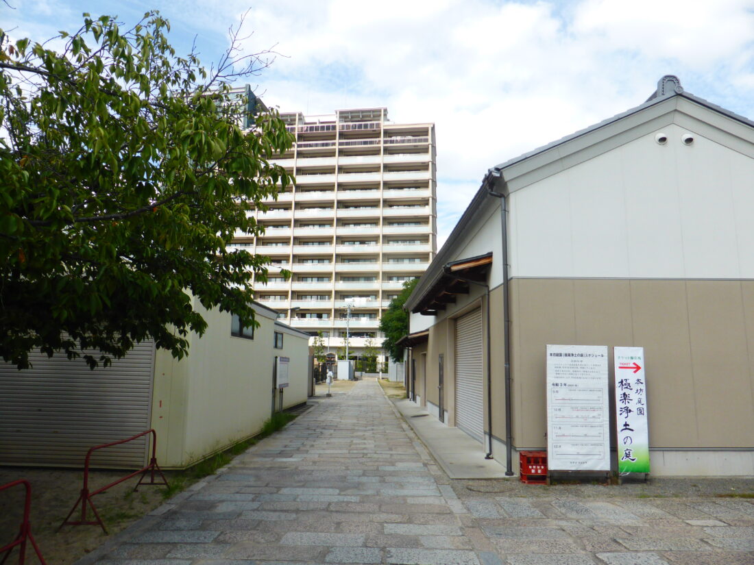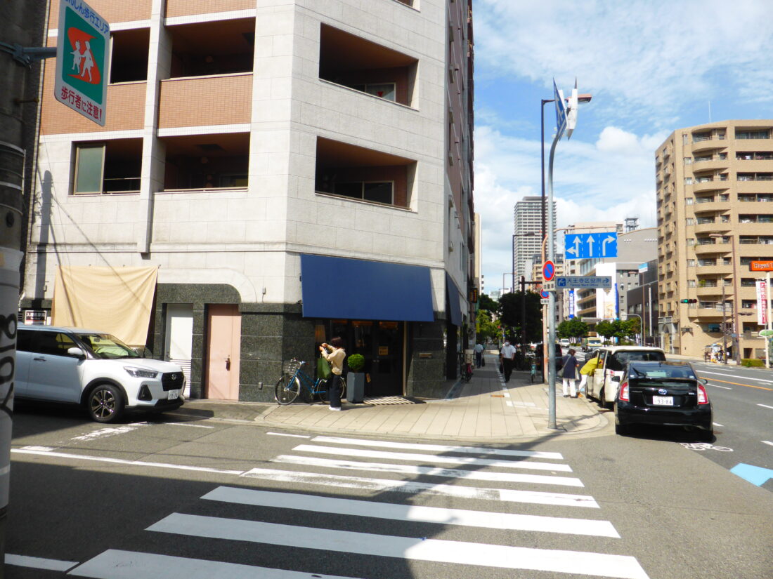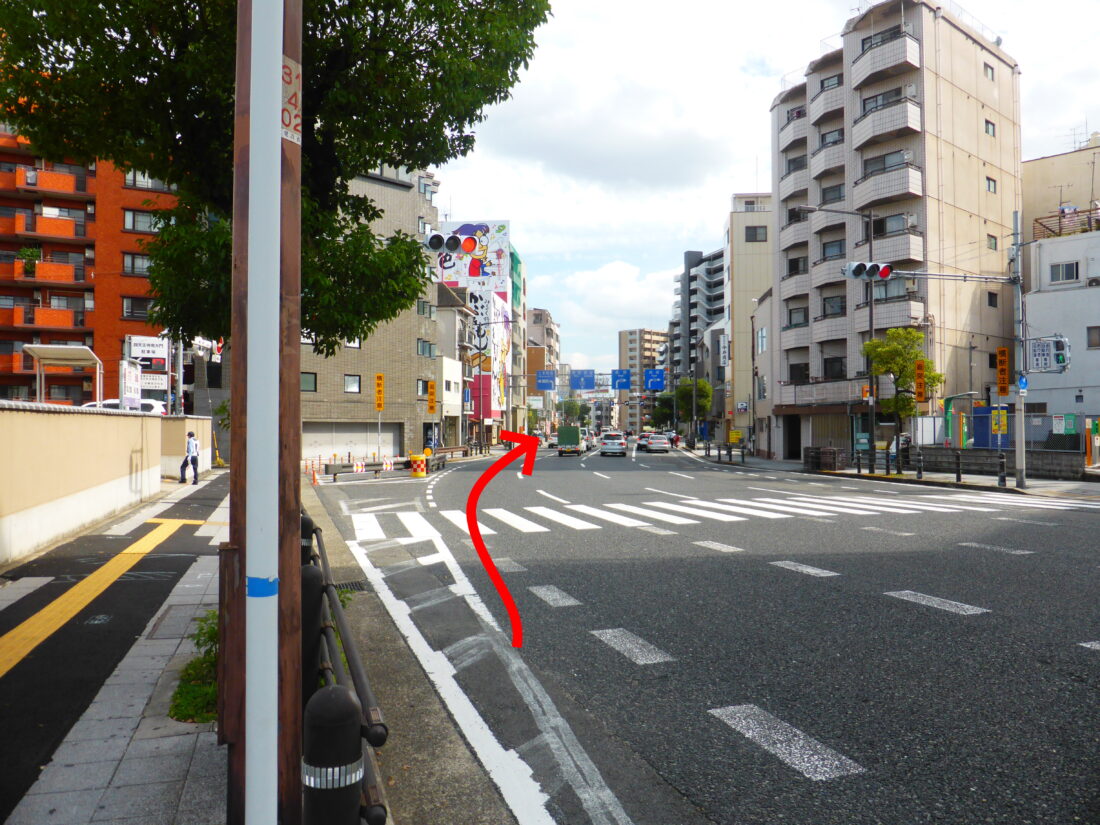 まずは、フルーツ大福の店です。四天王寺さんの南大門を出ます。