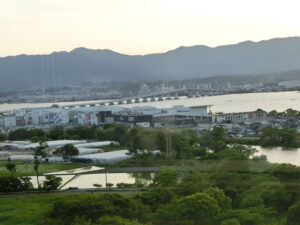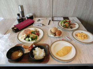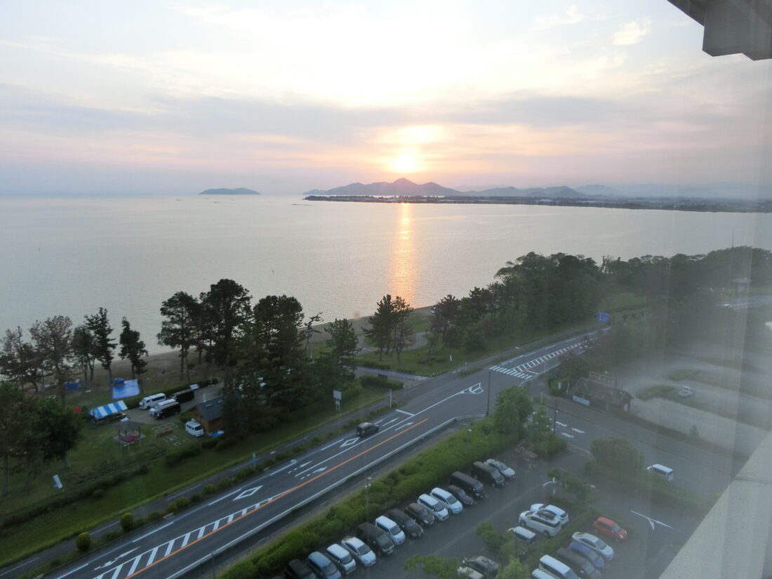2022.06.15 いってきました, 最新情報 琵琶湖マリオットホテルに行ってきました。 パナソニックリゾート ラフォーレ倶楽部 琵琶湖マリオットホテル 温泉付プレミアルームに泊まりました。 到着受付後、ラウンジでにてビール(発泡酒)とワインをいただきました。(会員のみ?)(パナソニック健保は会員です) 前菜 メインお肉 琵琶湖大橋 11階の部屋から朝陽を 朝食2人分 琵琶湖マリオットホテル サイクリストの聖地 ビワイチ北湖150K いってきました, 最新情報