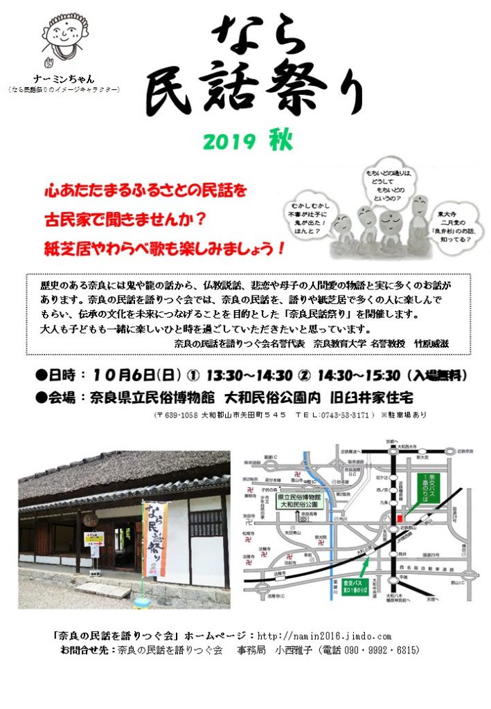 当支部の小西支部役員が所属している会による秋の「なら民話祭り」が、自然豊かな大和民俗公園内の古民家(旧臼井家)で開催されます。