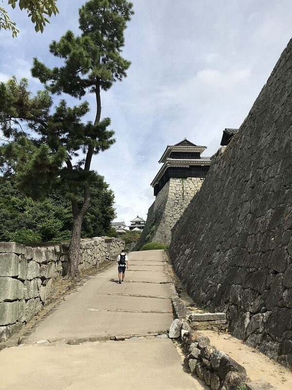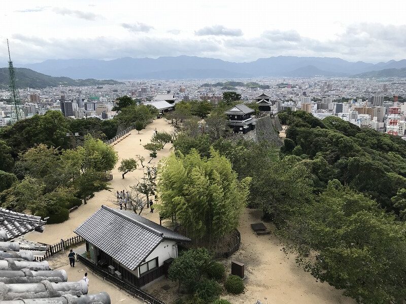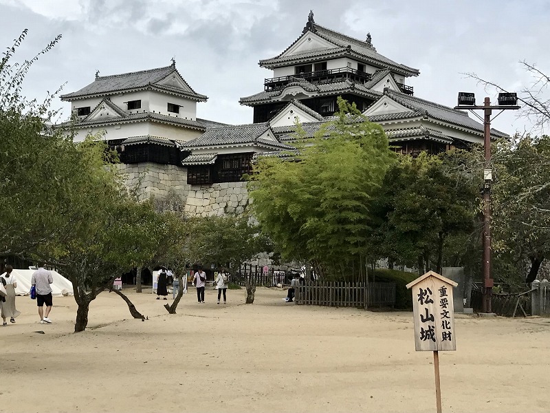 松山のシンボル松山城へ。このお城も現存12天守の1つ。勝山山頂に本丸、中腹に二ノ丸、山麓に三ノ丸がある広大な規模の城郭で、天守・城門・櫓など21棟は重要文化財。よく整備された美しいお城で、多くの観光客や修学旅行生で賑わっていました。