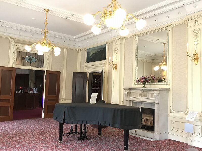 旧松山藩主の子孫 久松定謨伯爵が1922年に別邸として建てた「萬翠荘」(国重要文化財)は、松山城の麓に佇む格調高い建物(ネオルネッサンス様式)で、当時は最高の社交の場だったとのこと。往時が偲ばれます。最近は映画のロケ地としてよく使わているそうです。