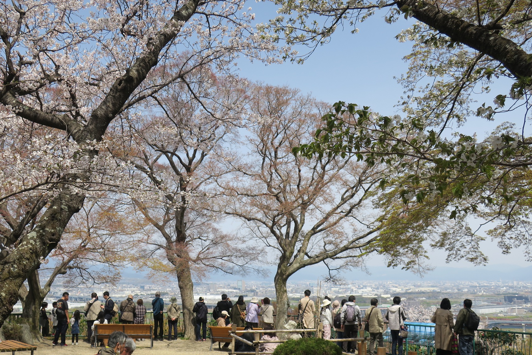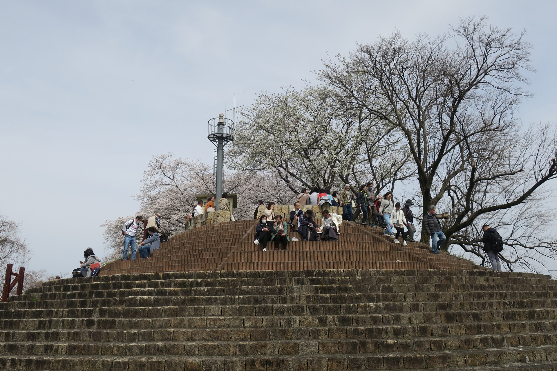 堤防までは、京阪電車「石清水八幡宮」駅(旧八幡市駅)から徒歩約10分程度。休日は大混雑ですが、歩行者はずうっと一方通行になっていて比較的スムーズに散策できます。