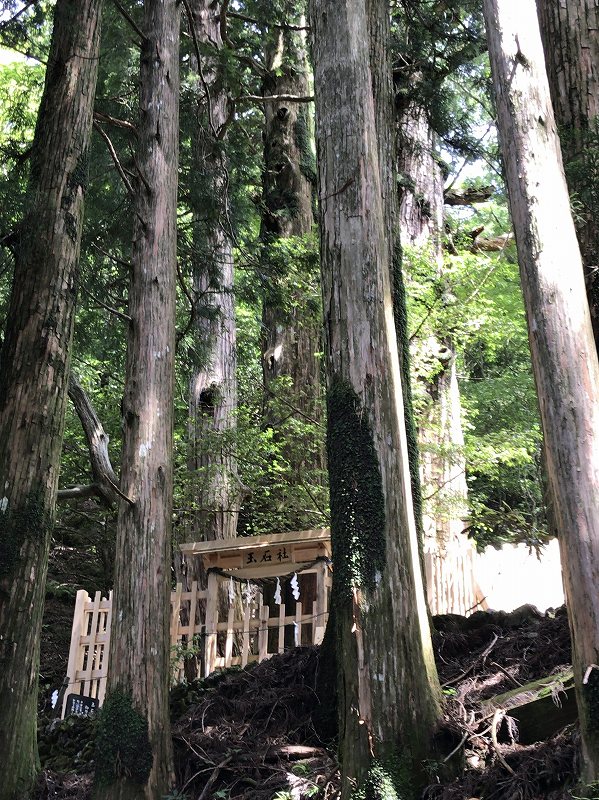 - 玉石社(3本の大木に囲まれてご神体の丸い石がある)