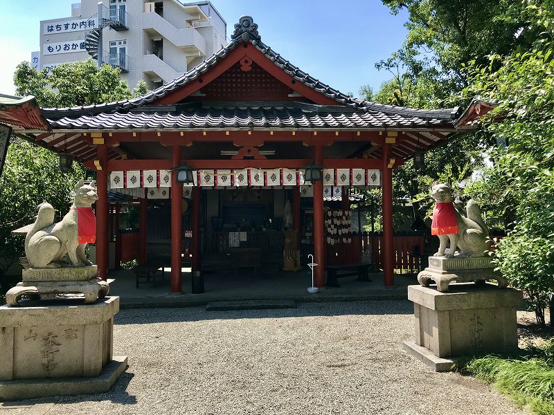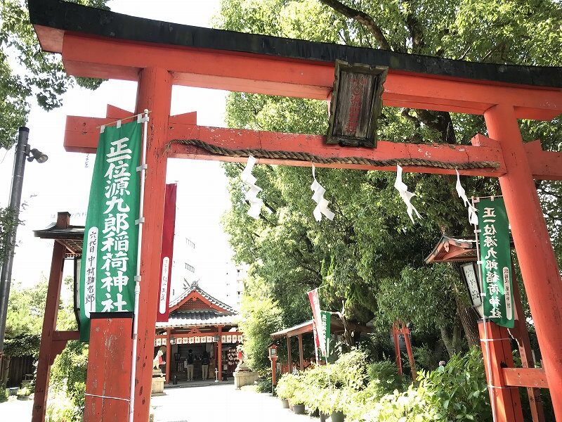 源九郎稲荷神社(大和郡山市)は、歌舞伎や文楽の「義経千本桜」に登場する「源九郎狐」を祀る神社です。源義経が兄頼朝と仲たがいをし、討手から奥州平泉に逃れる道中、この神社の「白狐」が家臣に化けて義経と静御前をずっと守りました。感謝した義経が自身の名「源九郎」を贈ったそうです。