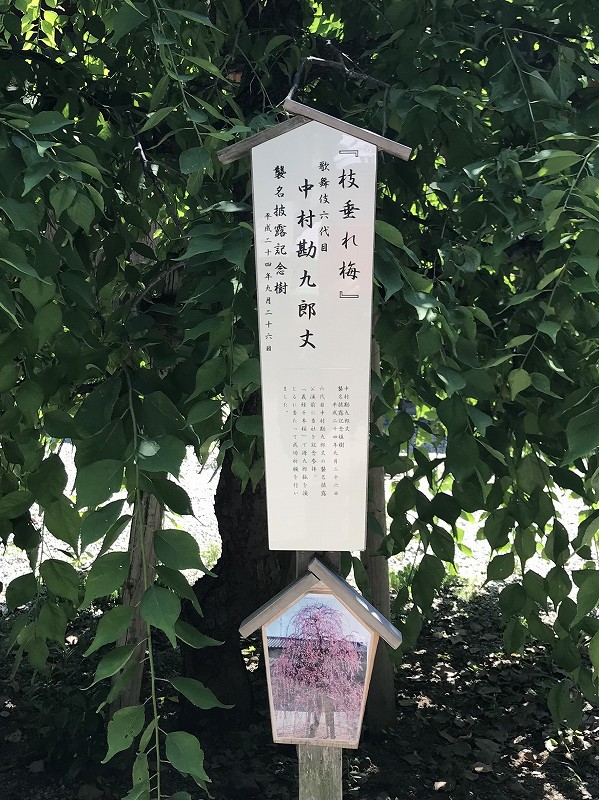 境内には六代目中村勘九郎襲名披露を記念して植樹した「枝垂れ梅」があります。
