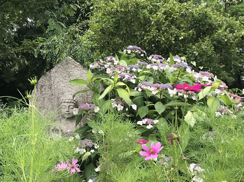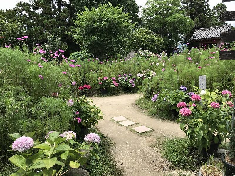 コスモス寺としても有名ですが、今は紫陽花と夏コスモスの季節で、境内はカメラを持った多くの方々で賑わっていました。