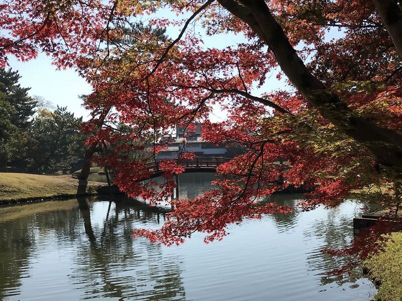 同庭園は室町時代の有名な庭師・善阿弥が手掛けたもので、明治初頭まで南都随一の名園とたたえられ、1958年には国の名勝に指定されたとのこと。久しぶりに訪れましたが、とても綺麗な庭園で心が落ち着きます。