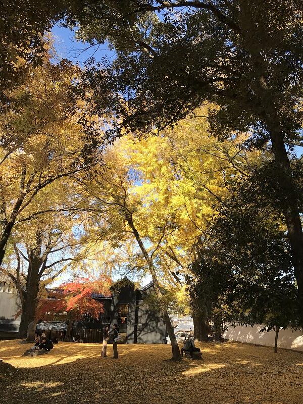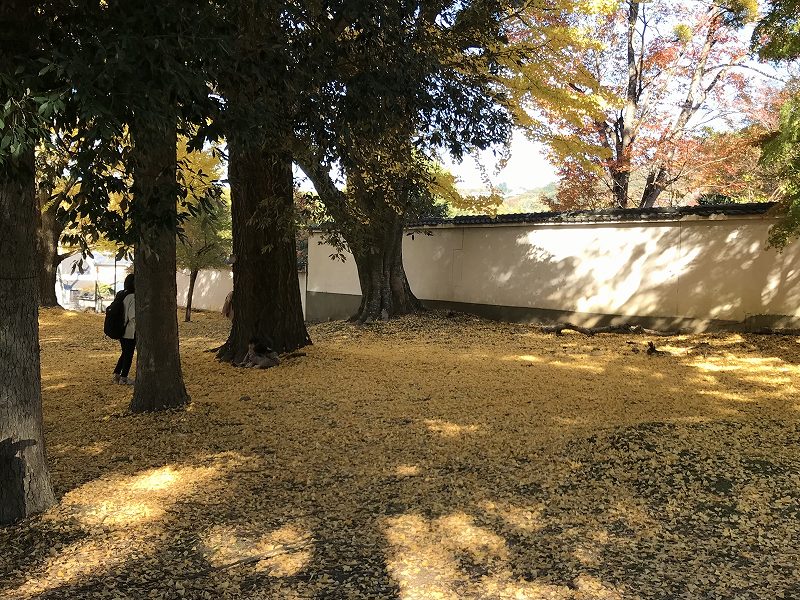 奈良公園内「みとりい池園地」のすぐ北側にある遺跡。かつては「東大寺南大門」を上回る規模の巨大な門(東大寺西大門)があり、東大寺の正門のような役割を果たしていたとも言われているそうです。とても見事なイチョウの黄葉なので、写真撮影や写生をしている人が多く来られていました。