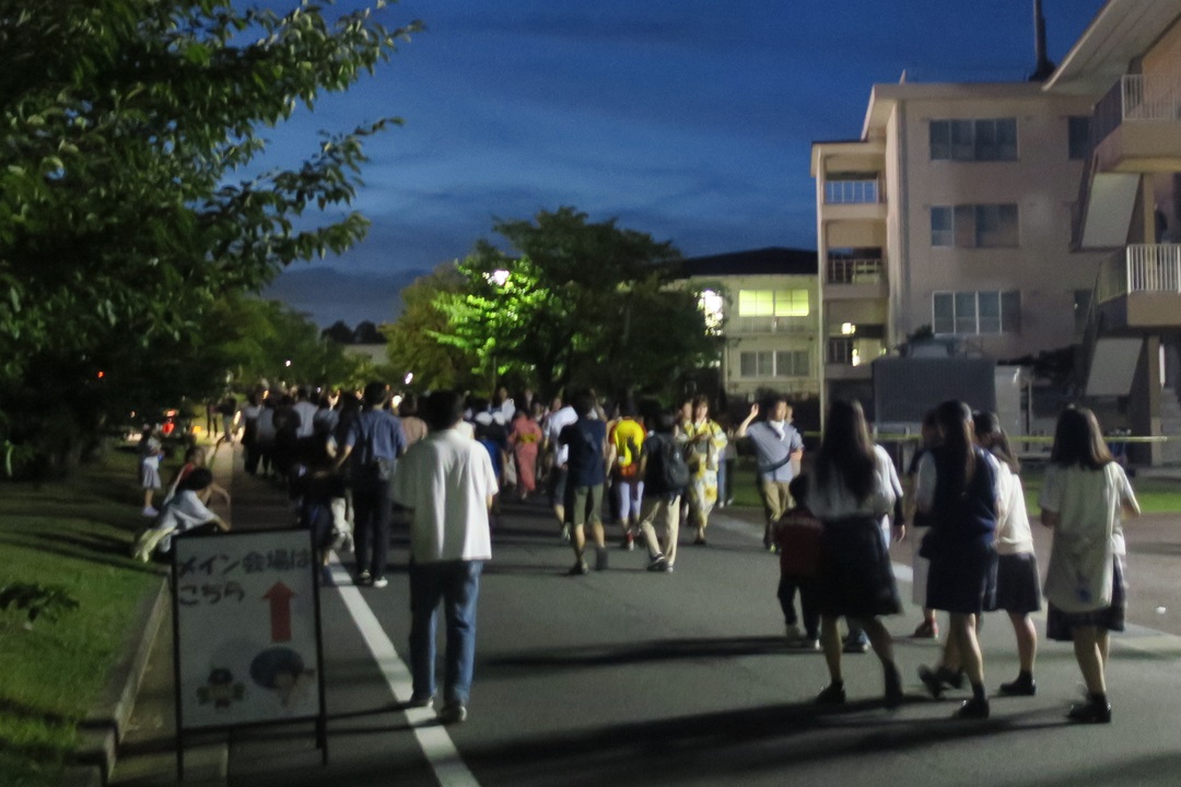 夕方から太鼓や吹奏楽の演奏にダンスに盆踊りが行われた後、花火大会で締めくくり。