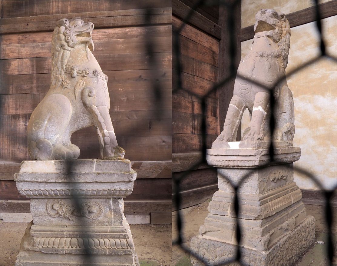 南大門の国宝仁王像は有名ですが、背面に不思議な形の狛犬があり、中国式の反り返った姿で、日本最古の狛犬だそうです。