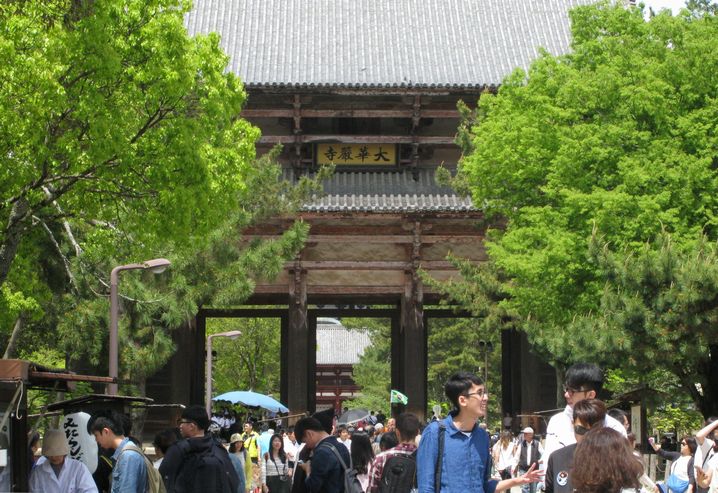 観光客で賑わう南大門。「大華厳寺」とは東大寺の別称のようです。