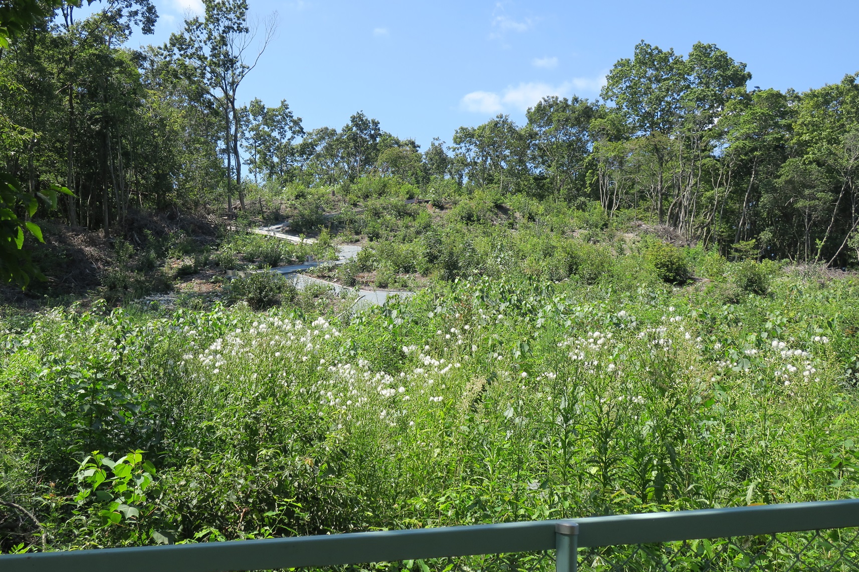 2017年に円墳としては国内最大規模と判明した「富雄丸山古墳(直径約110m)」。西部生涯スポーツセンターのテニスコートや野球用グランドに隣接していて周囲は住宅街です。 現在は史跡整備に向けた調査中で墳丘の最高部に入ることができませんし他には何もありませんが、周囲の遊歩道が整備されており、イオンタウン富雄南からもそれほど遠くなくて気軽に散歩できます。