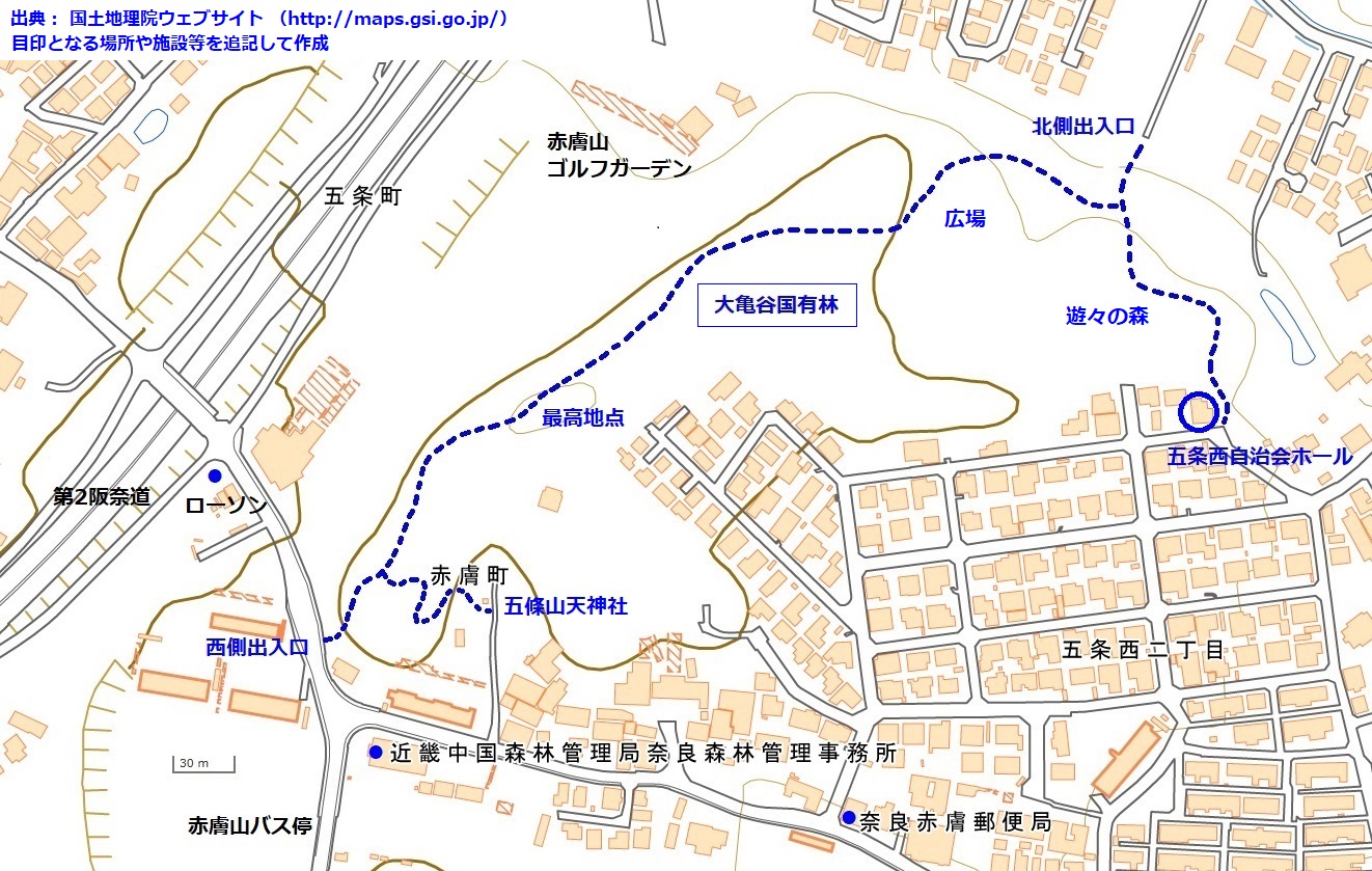 奈良市南西部赤膚町の住宅街に国有林がポツンと残っています。