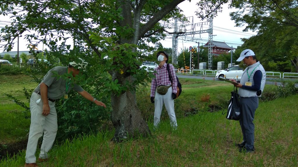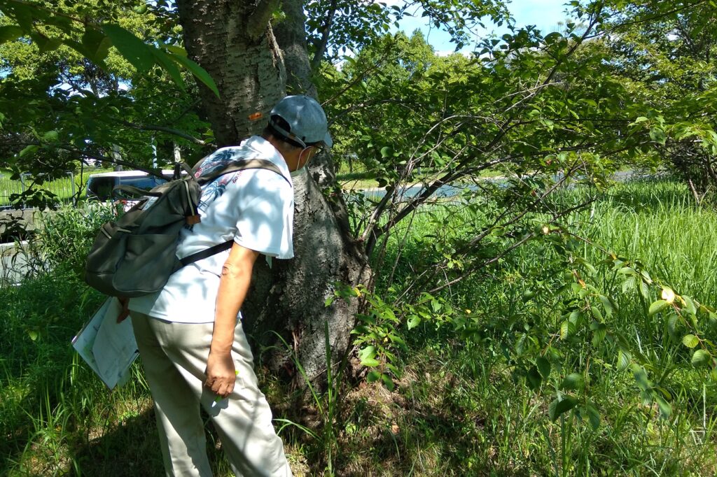 例年7月下旬から8月末まで活動を休止していますが、昨年に続いて奈良県より依頼を受けた平城宮跡歴史公園内の桜の木の害虫状況調査(対象:109本)を2回行いました。 参加いただいた皆様、厳しい暑さの中お疲れ様でした