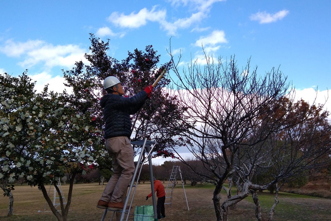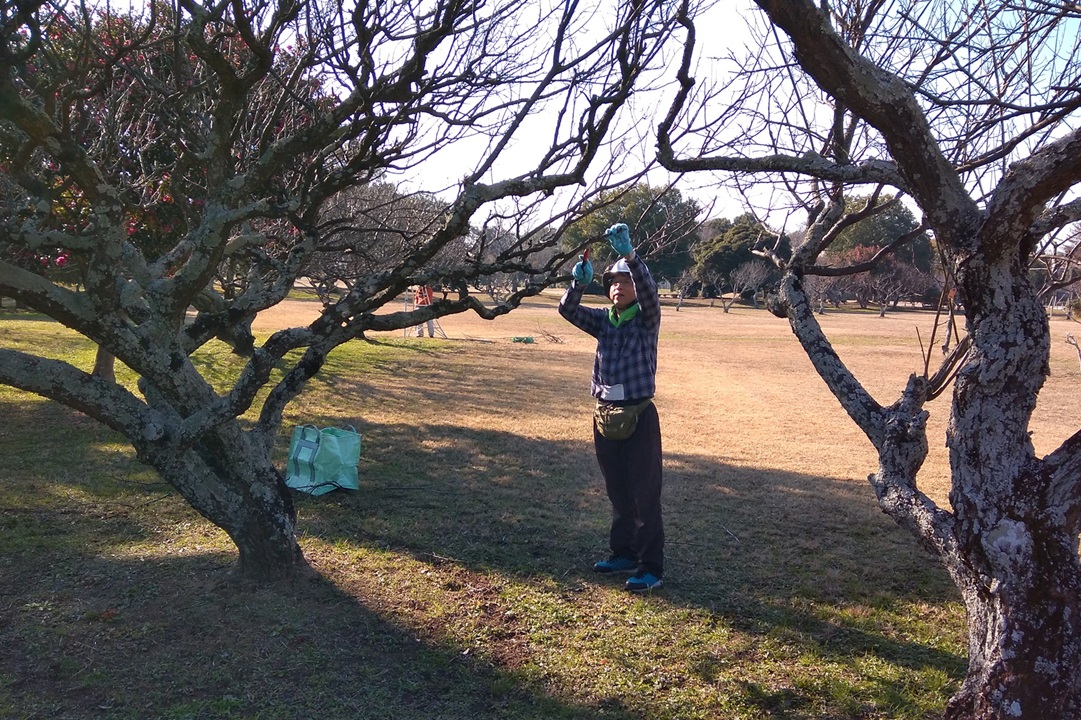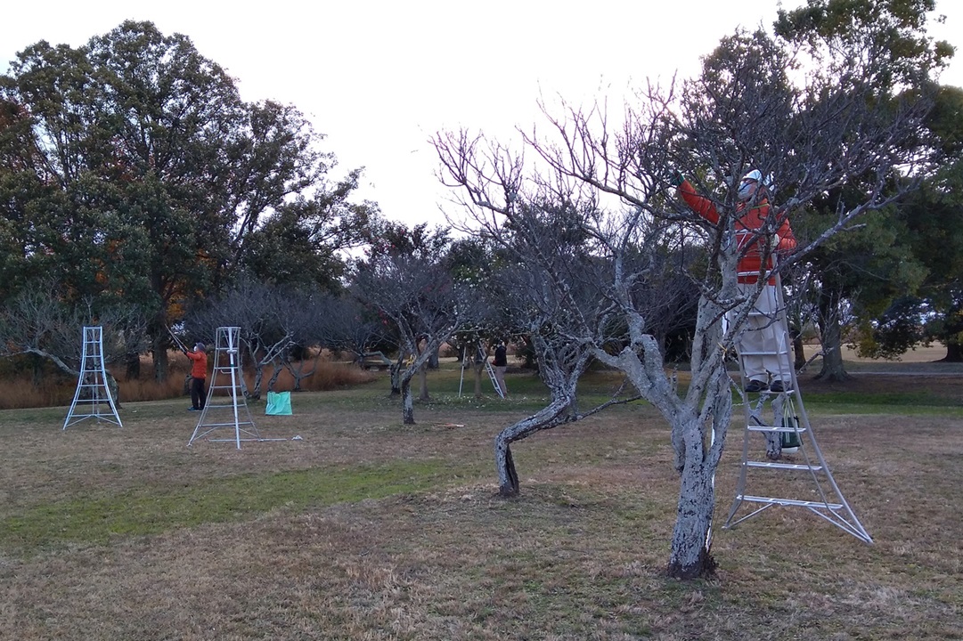 ・作業内容は資料館東側に広がる梅林の「梅の木の剪定」でした。
