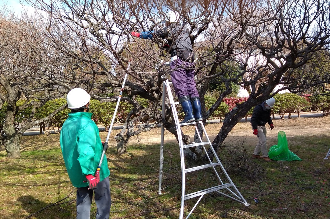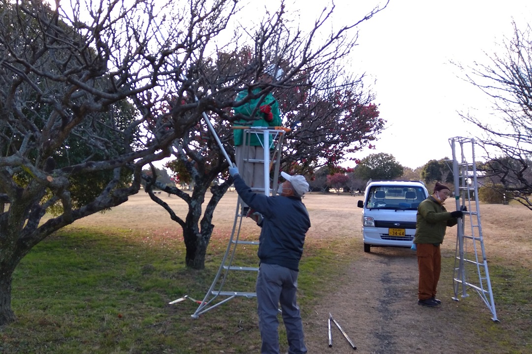 ・先月に引続き資料館東側梅林の「梅の木の剪定」でした。