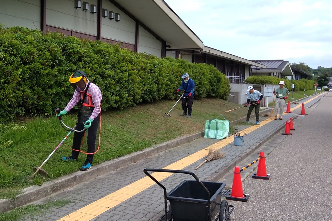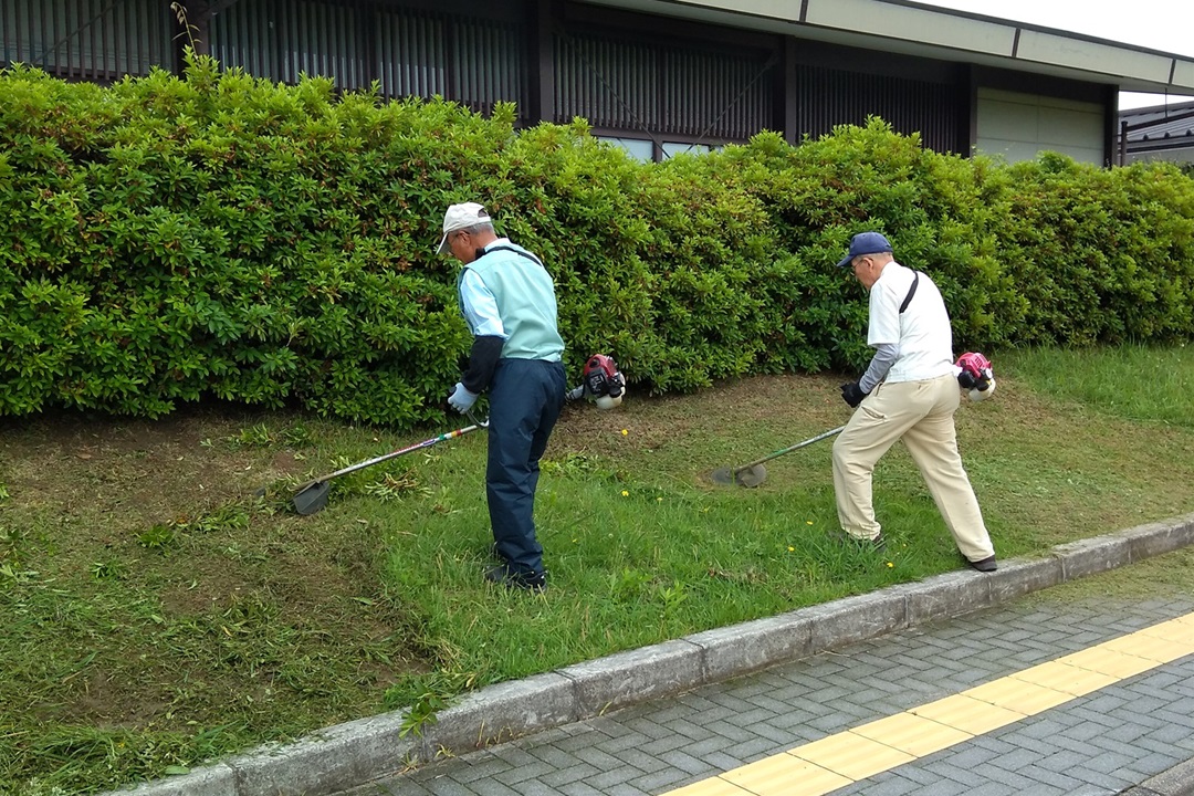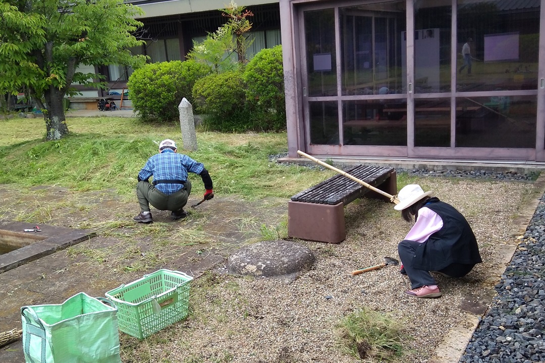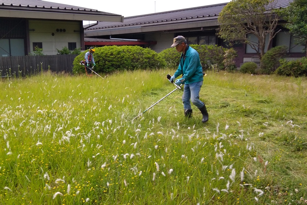 ・作業内容は資料館の中庭および玄関周辺の草刈と雑草除去でした