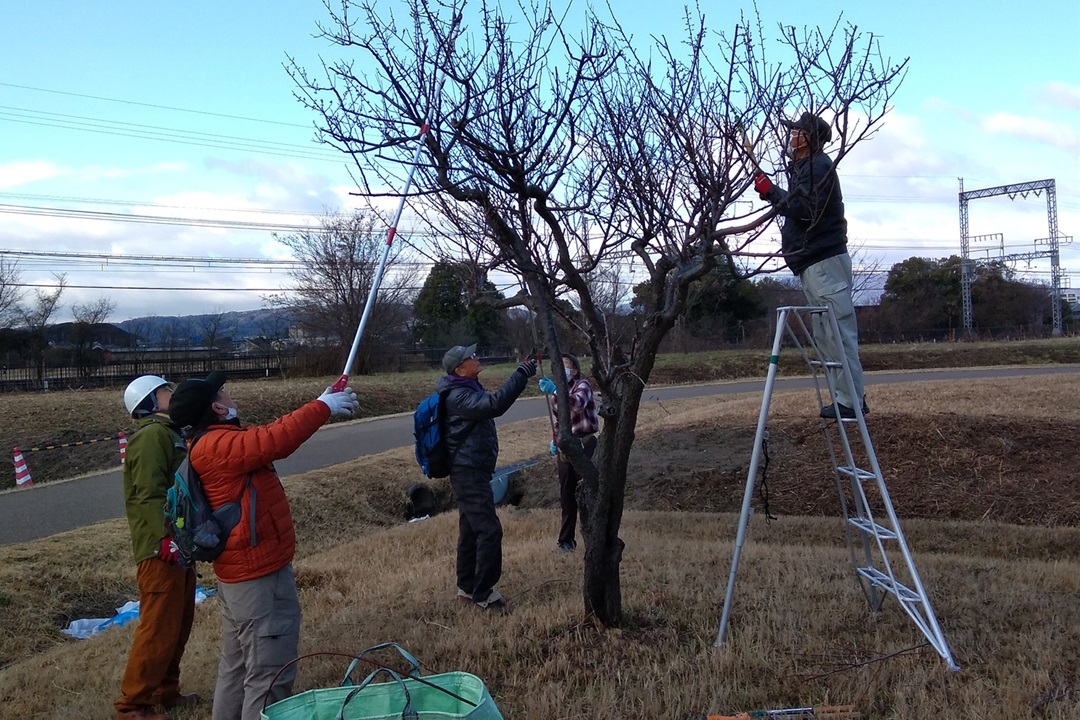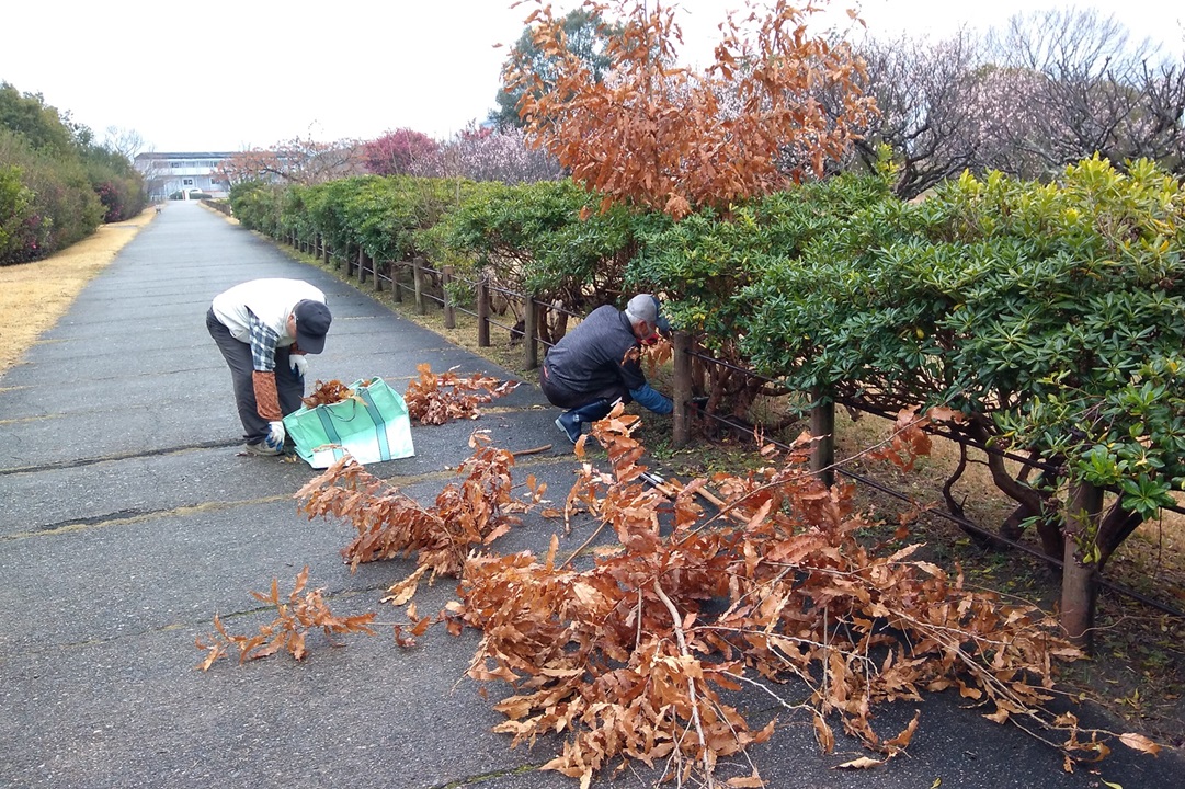 ・第1週は国土交通省エリア遊歩道沿いの「梅の剪定」、第2週は大極殿東側の「萩の木約20株の刈取」、第3週は梅林北側の「トベラ生垣の剪定」を行いました