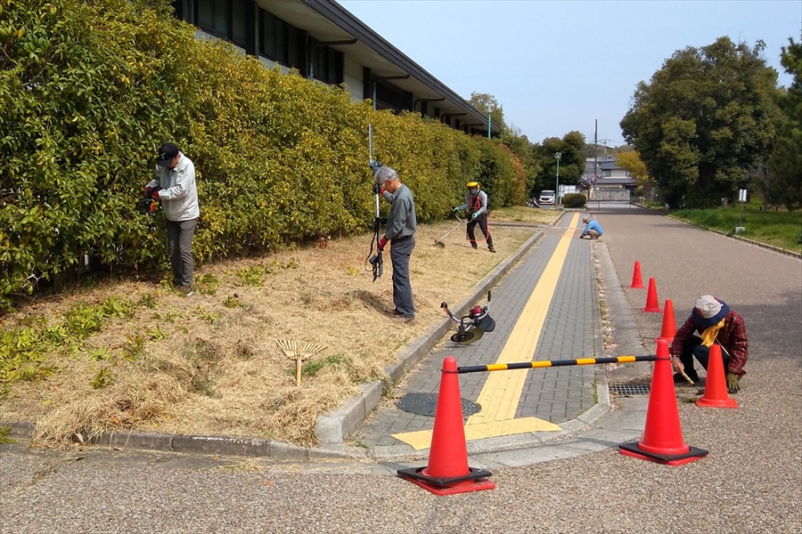 ・作業は 平城宮跡資料館 玄関前通路沿いの草刈・除草と生垣剪定でした