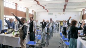 - 議事に入る前に、物故者(会員13人、配偶者4人)のご冥福を祈念して黙祷をささげました。