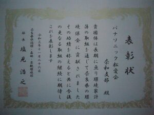 おかげさまで奈和支部の取組活動に対して奈良県から表彰状を頂きました(2021.11.26表彰式)。 - 奈良環境家計簿には2574世帯(奈和支部33世帯)が参加いただいております。