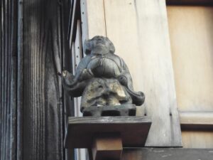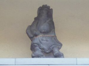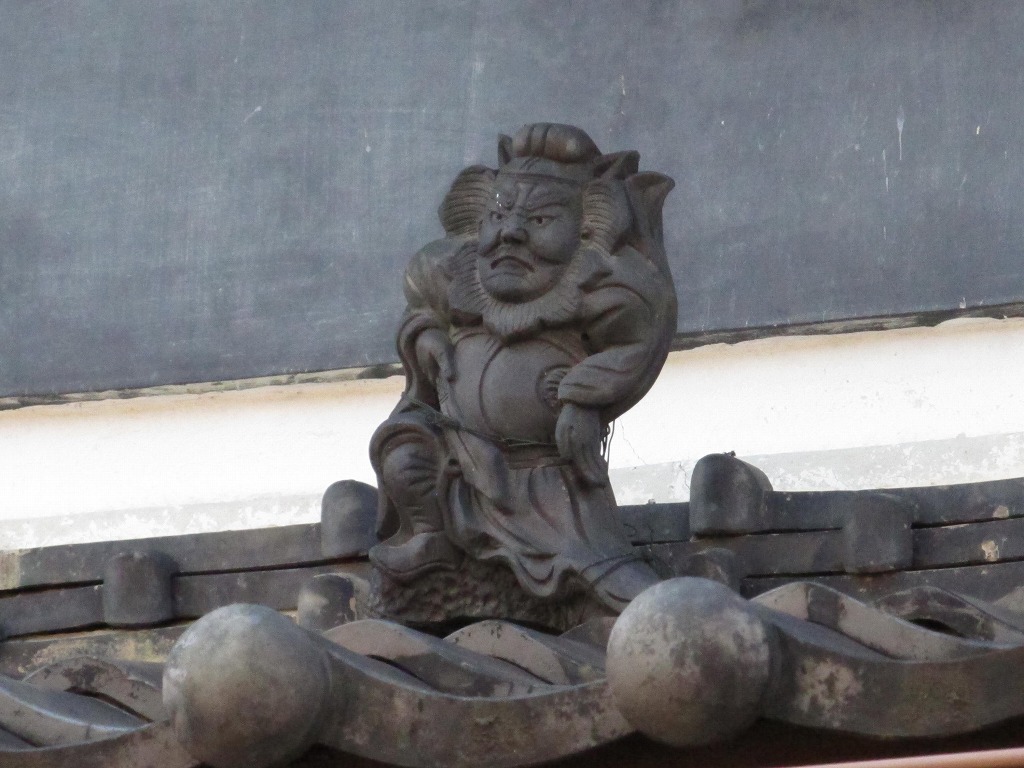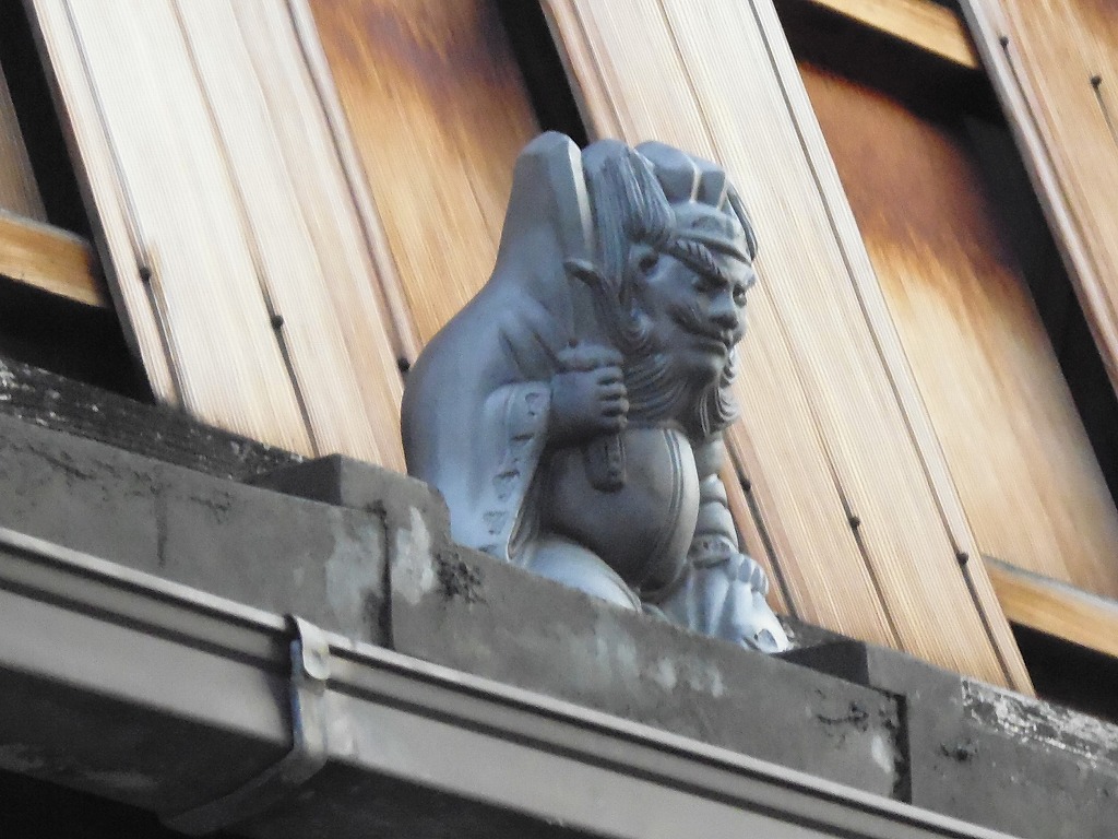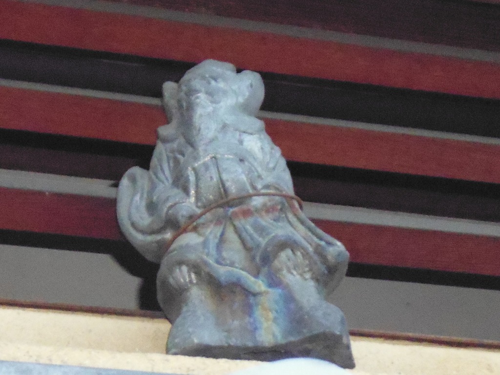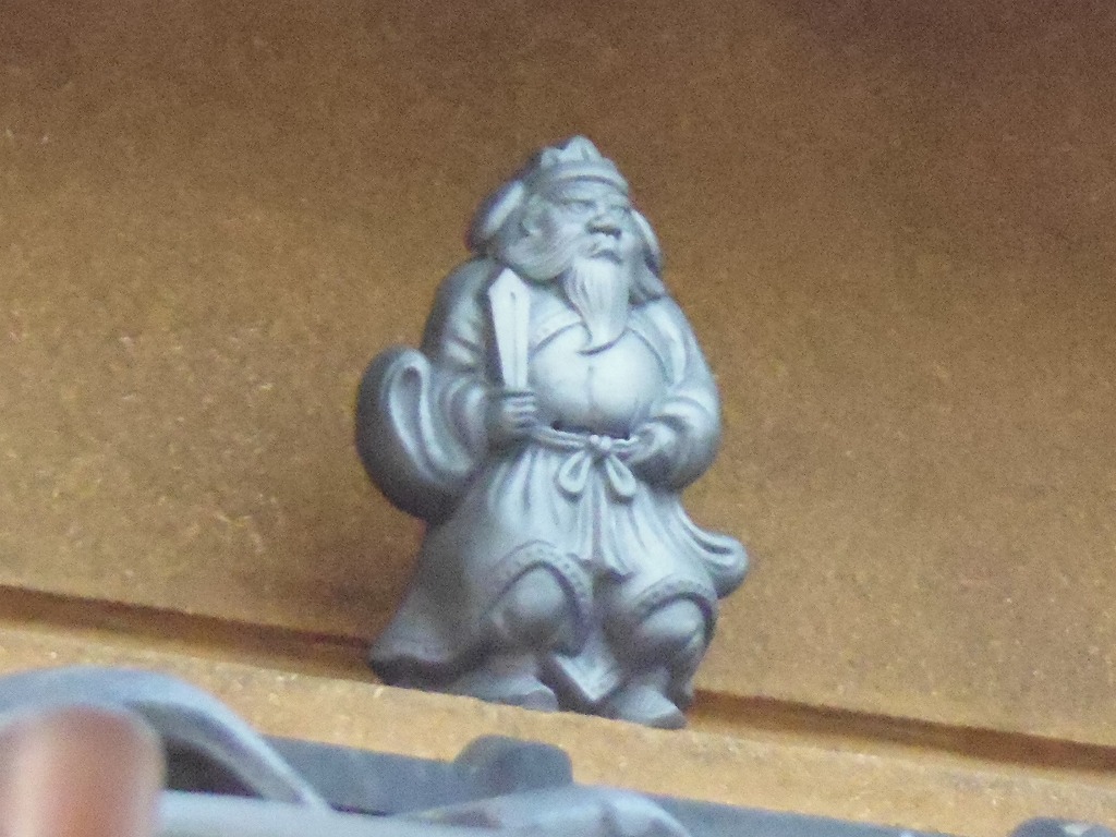 鍾馗(しょうき)は、主に中国の民間伝承に伝わる道教系の神です。 - 京都市内の民家(京町家)など近畿~中部地方では、現在でも大屋根や小屋根の軒先に10~20cm大の瓦製の鍾馗の人形が置いてあるのを見かけることがあります。
