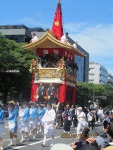 24日は烏丸御池の指定席で、祇園祭、後祭の巡行を見学しました。11基の鉾や山の巡行は、壮大でした。