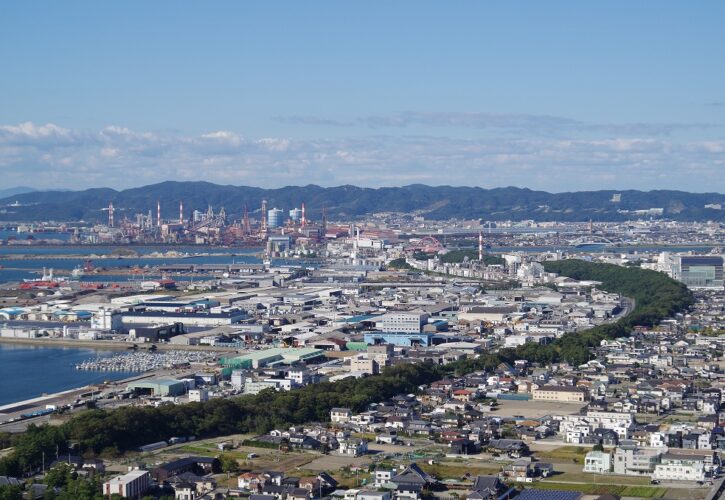 紀伊水道・友ヶ島・淡路島ー加太ー和歌山下津港ー臨海工業地帯ー和歌山大学ー和歌山城・中心部-名草山・紀三井寺-和歌浦湾・マリーナシティーー雑賀崎と360°展望が可能です。