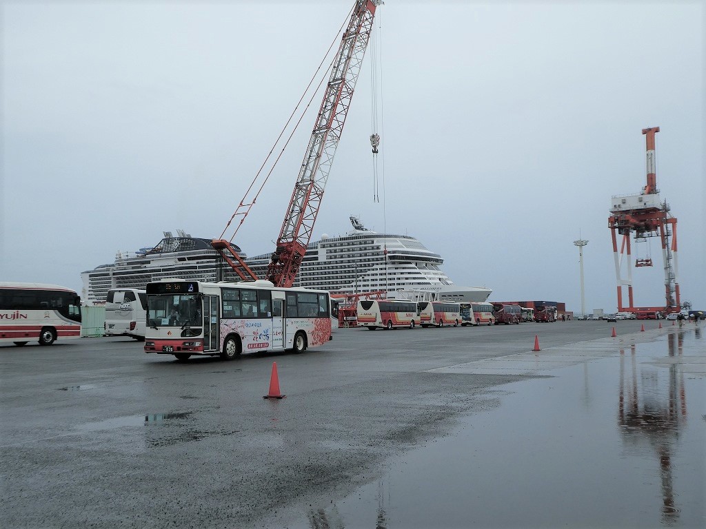 乗船客は寄港地ツアーや循環シャトルバス(港→和歌山城→紀三井寺→マリーナシティ黒潮市場)で和歌山を観光します。