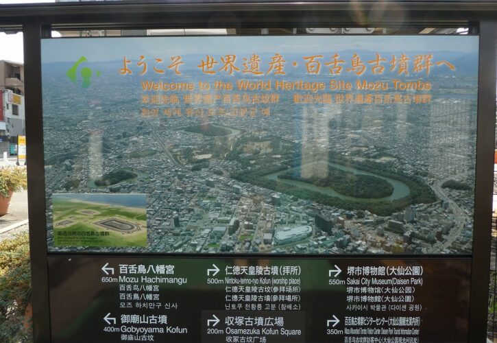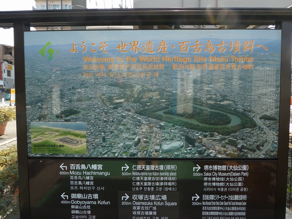 墳墓は全体像見るには空からになるのでしょう。私は百舌鳥古墳群シアター(堺市博物館)で映像で見ました。堺市役所21階の展望ロビーからも見られるようです。