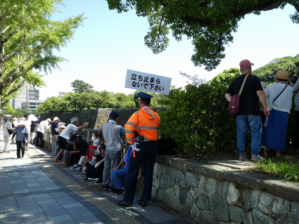 平日にもかかわらず普段とは違うお堀の様子や作業を見ようと多くの人で周囲は賑わっていました。