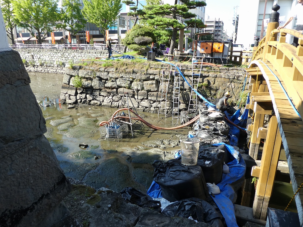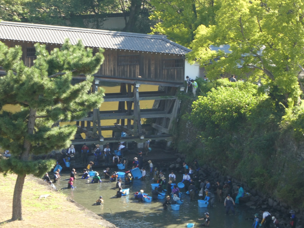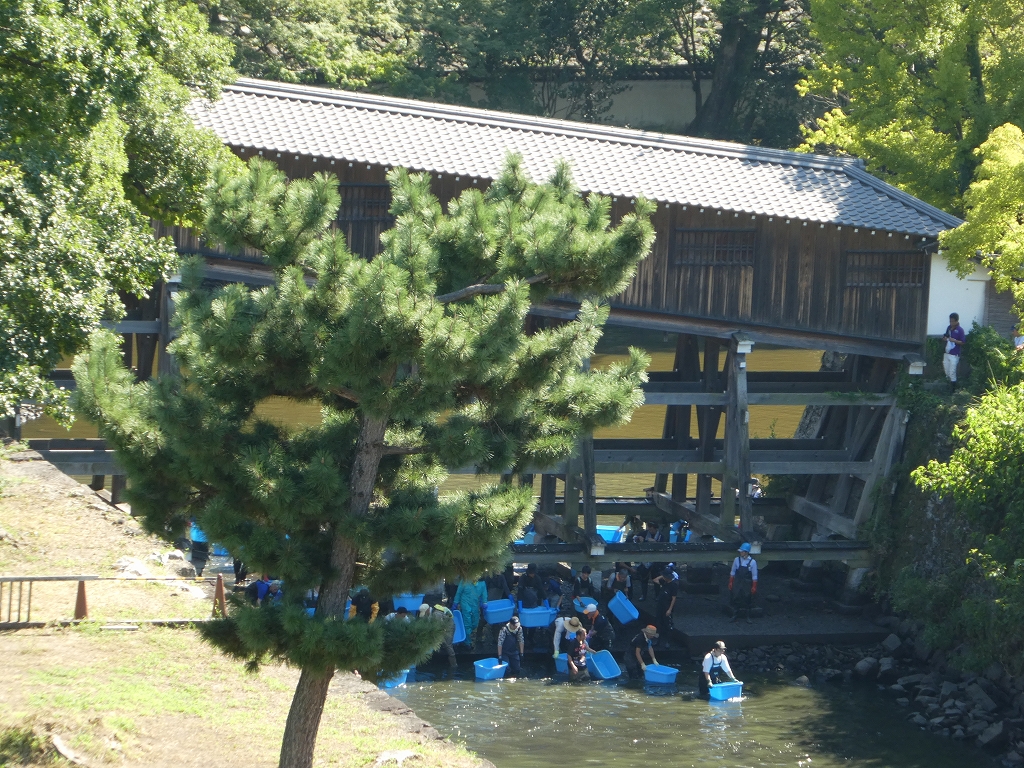 和歌山城のお堀の水を全部抜いて清掃や様々な活動をしたりするのです。