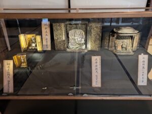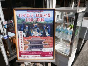 御開帳の期間のみ拝観できます。近頃は、春と秋に拝観出来ます。約7m 三体の像があります。写真撮影不可です。