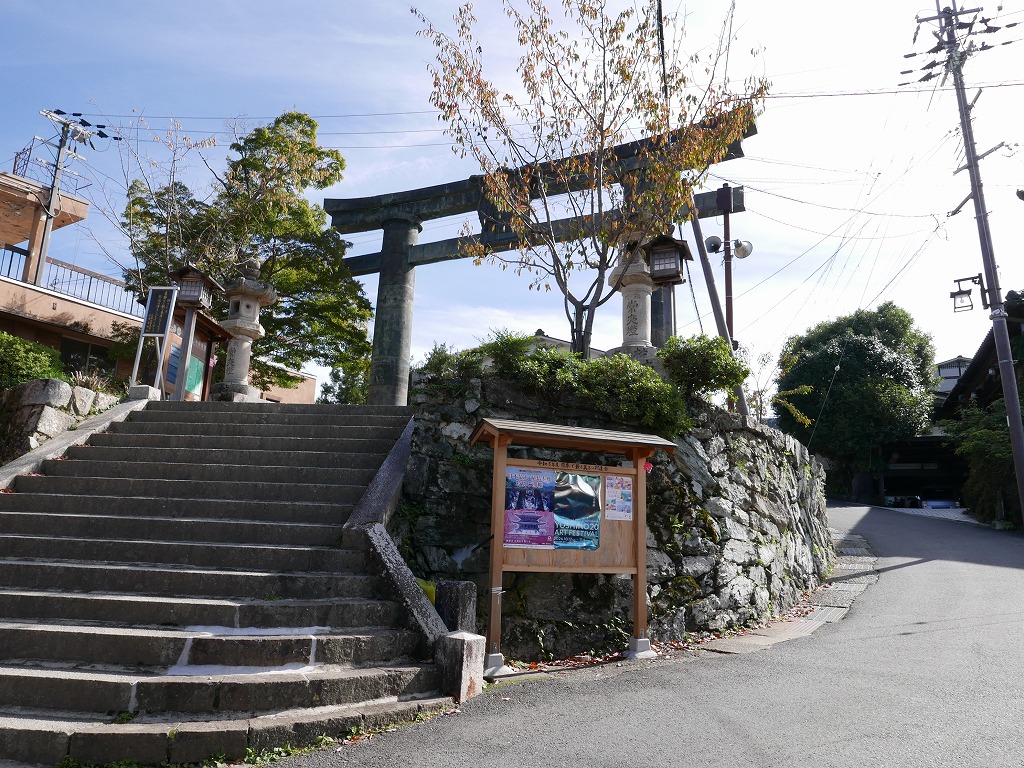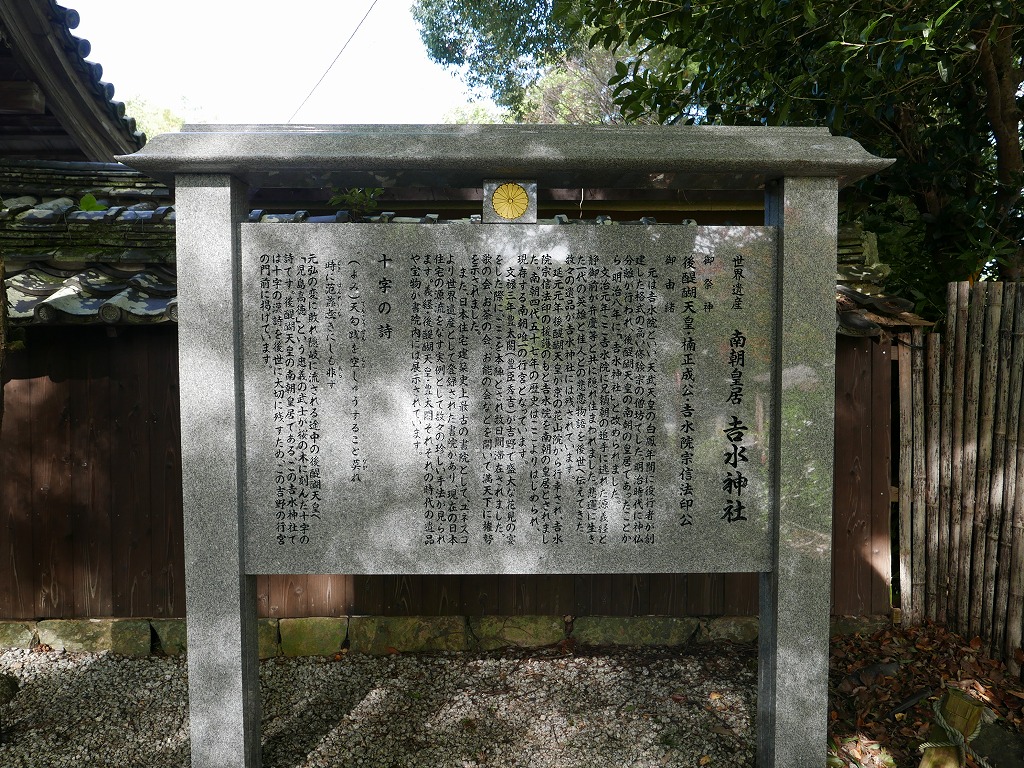 ?水神社(源義経・静御前が弁慶らと身を隠した、後醍醐天皇の行宮であり、吉野朝皇居跡、豊臣秀吉が花見の本陣)