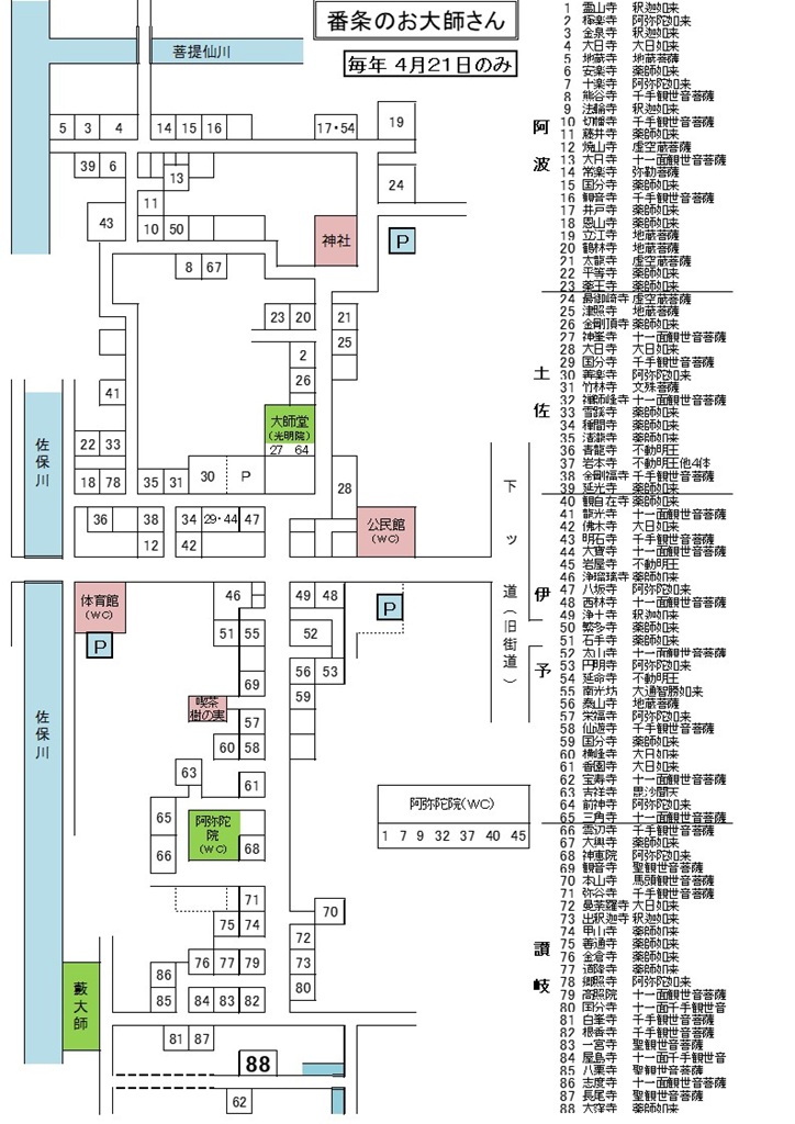四国八十八ヵ所に模した1番札所から88番札所の弘法大師を収めた厨子を