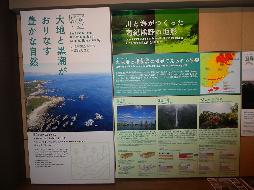 南紀熊野ジオパークセンター、紀伊半島中南部の成り立ちが詳しく解説されています。