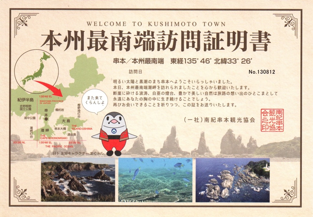 本州最南端の場所(潮岬):北緯33度26分 は日本では八丈島、高知県南部、大分県、長崎県が同緯度です。