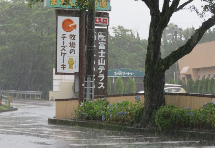 「富士川サービスエリア」「まかいの牧場」に立ち寄り、買い物し雨宿りをしました。