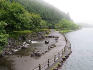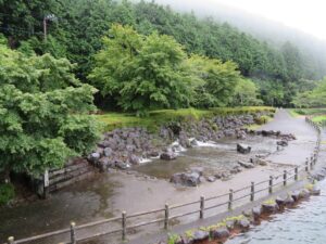 (7月15日) 朝から土砂降りの雨で「白糸の滝」や「人馬の滝」「富士芝桜展望台」などの見学を断念しました。