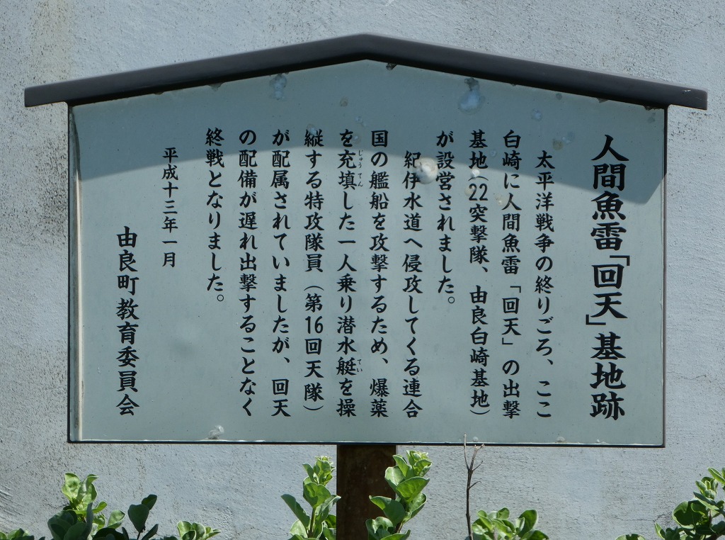 白崎海岸は、人間魚雷『回天』の基地でした。但し回天の配備が遅れ終戦となり出撃することなかったとのことです。